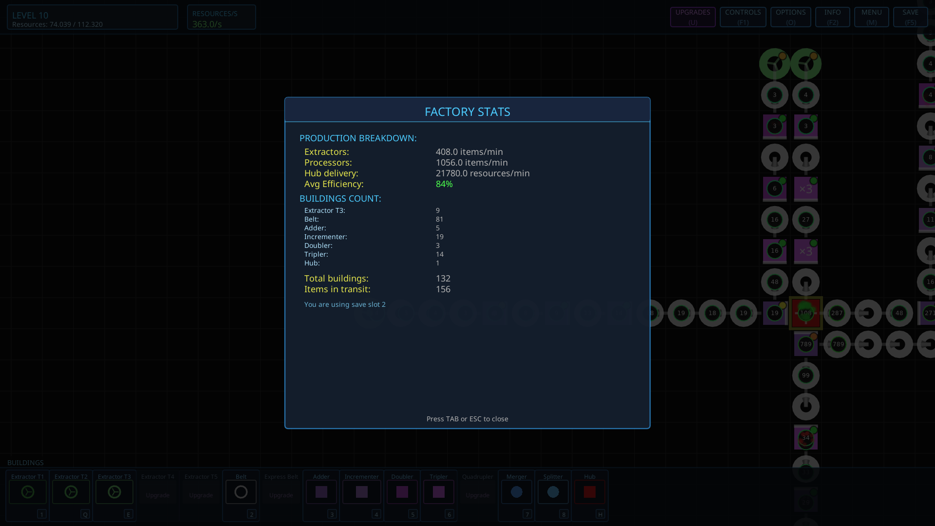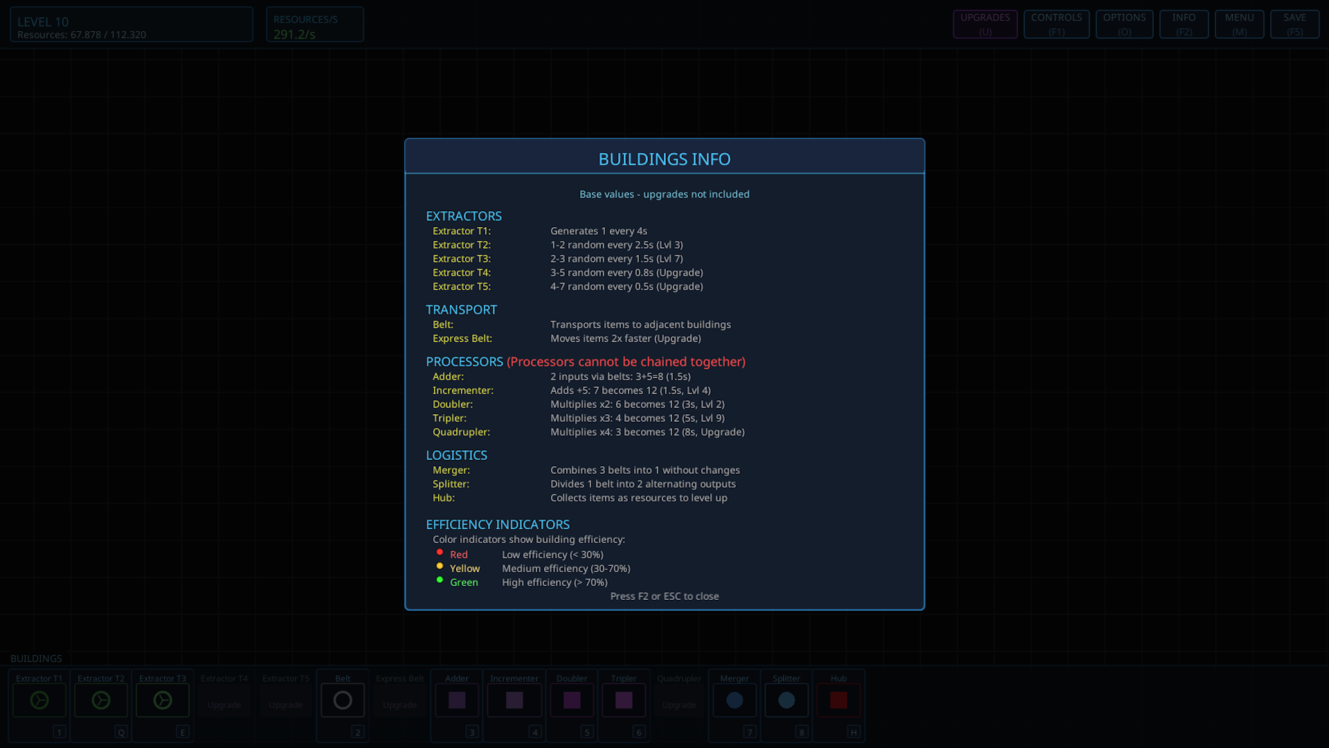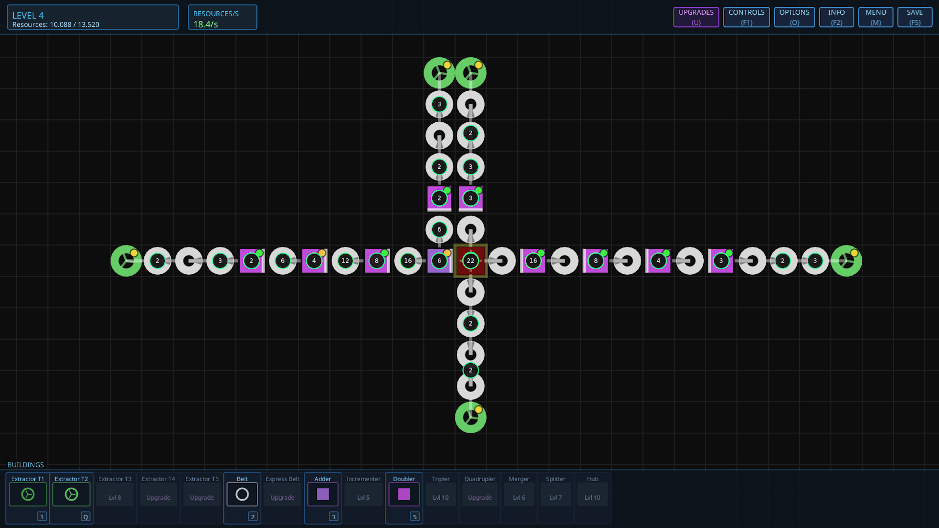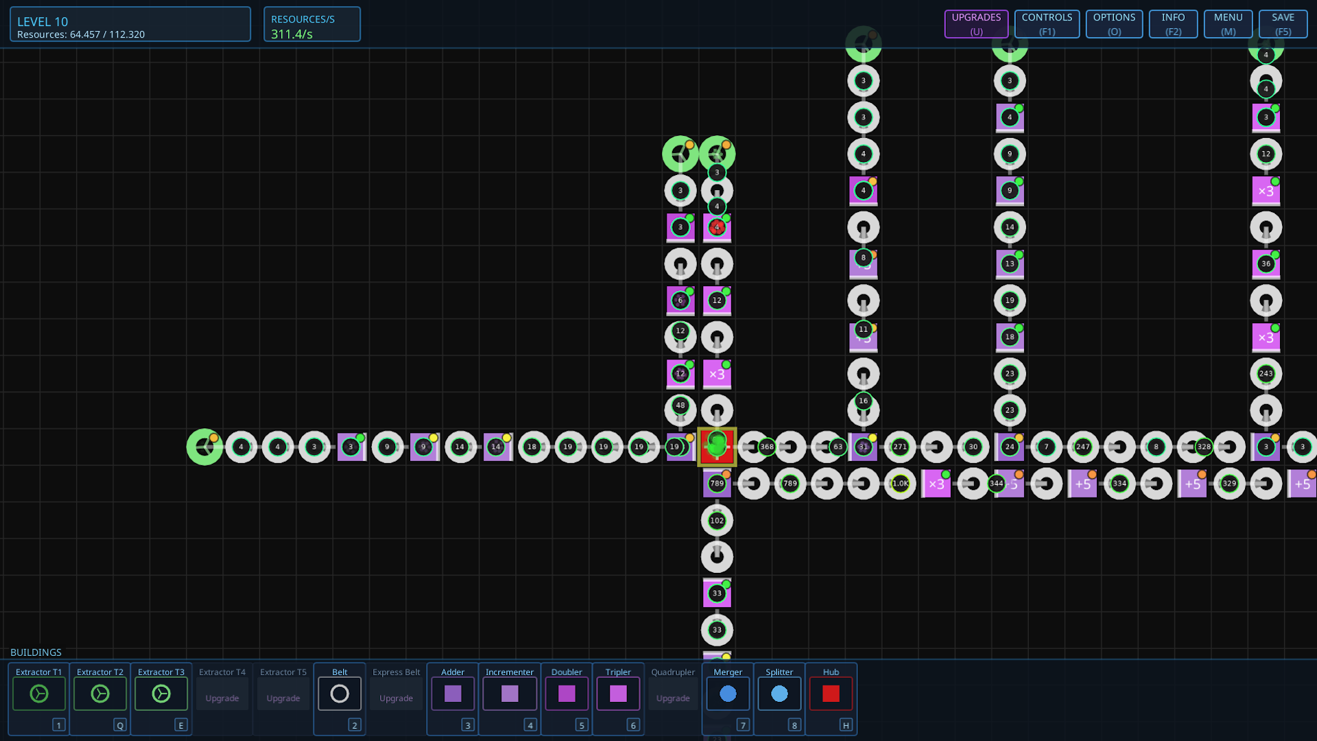 Dumbers is an automation game where you extract numbers, process them with math operations, and deliver to the Hub to progress through infinite levels. Focus on building and refining your factory step by step.